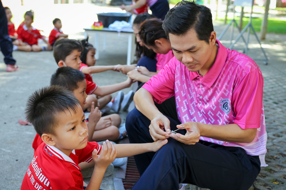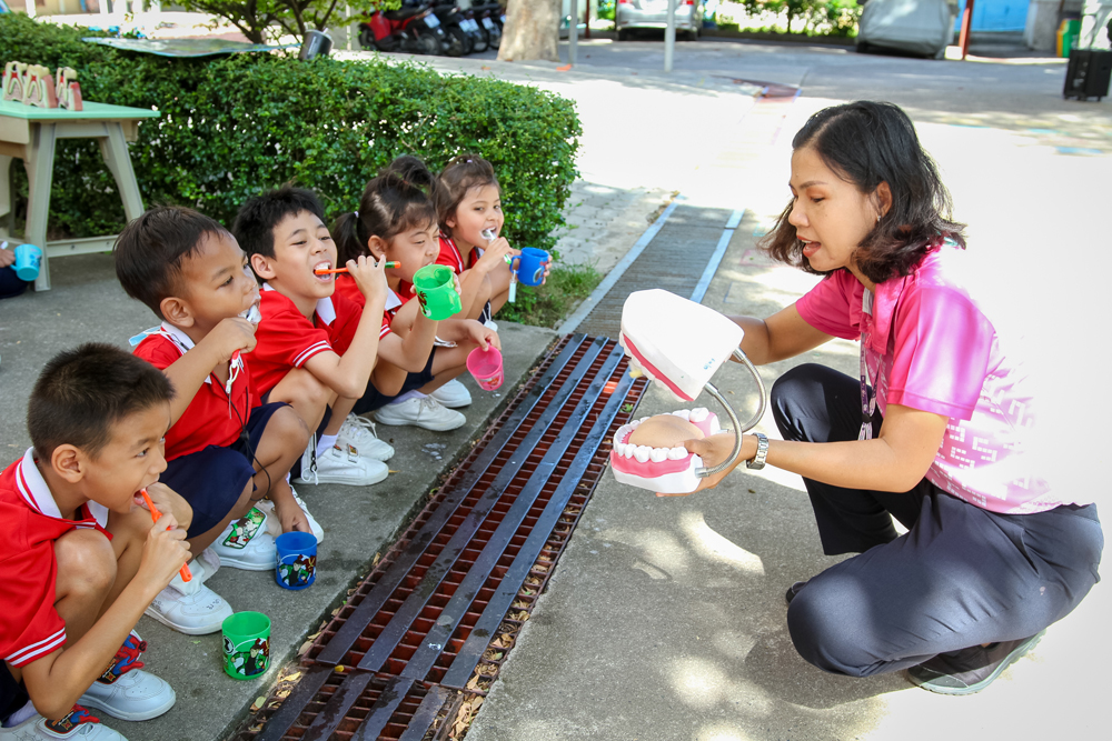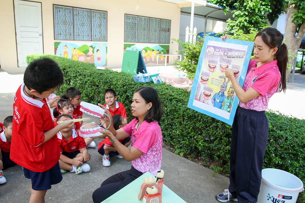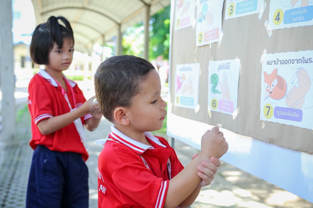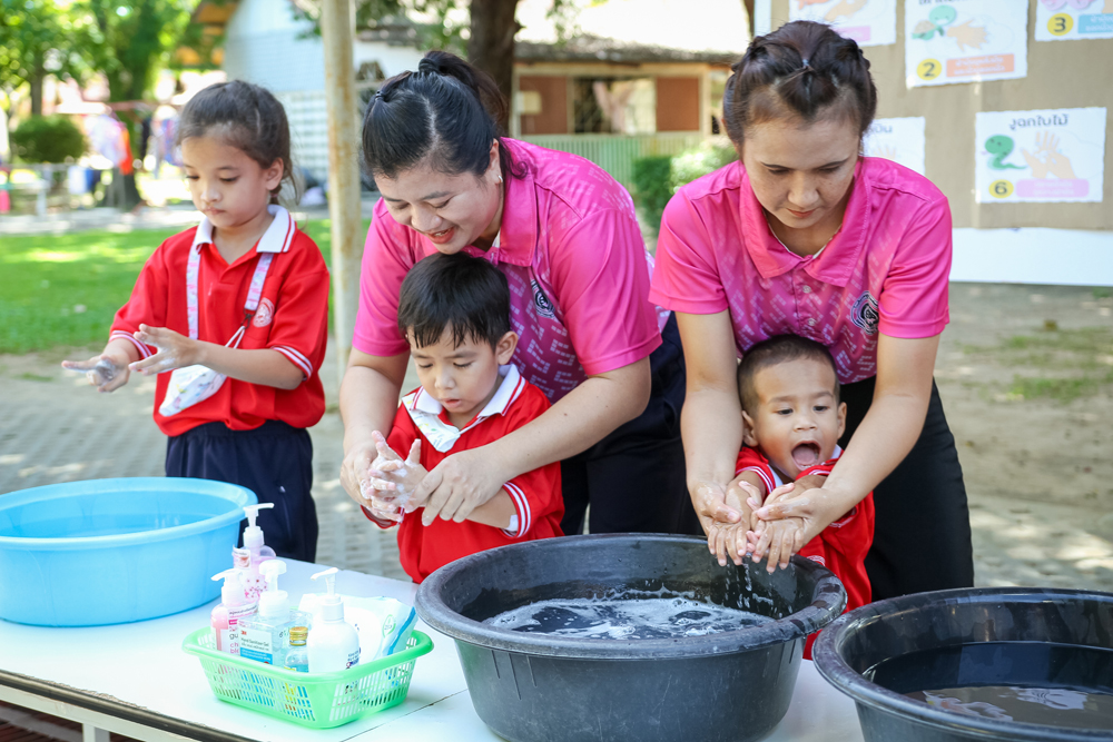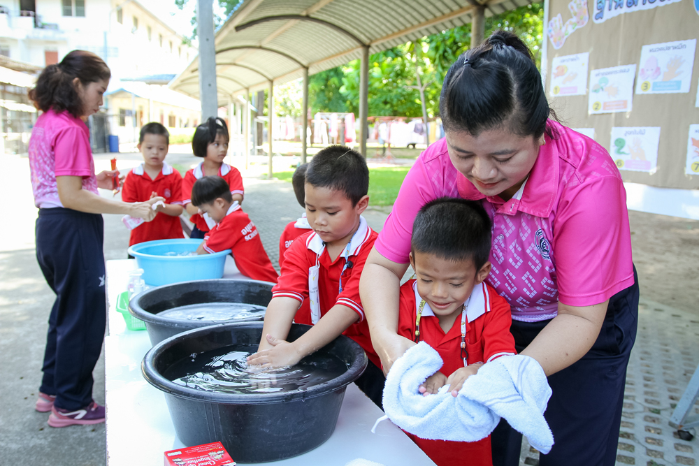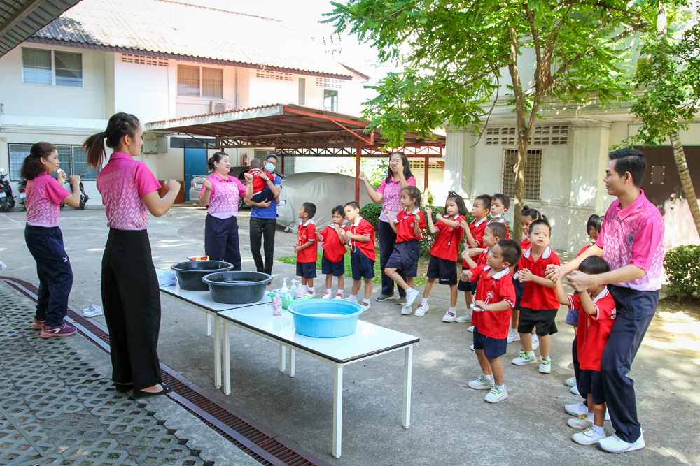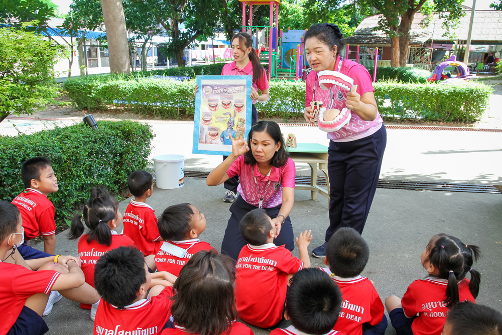 Sotpattana School for the Deaf organizes a special activity on “Healthy Kids” on Friday 10th June 2022 to promote students’ personal hygiene. Participants are divided into two groups and join the two learning stations: i.e. Hand Washing and Teeth Brushing. With fun and actual practice, they learn the seven steps of hand washing and the correct way of brushing their teeth.