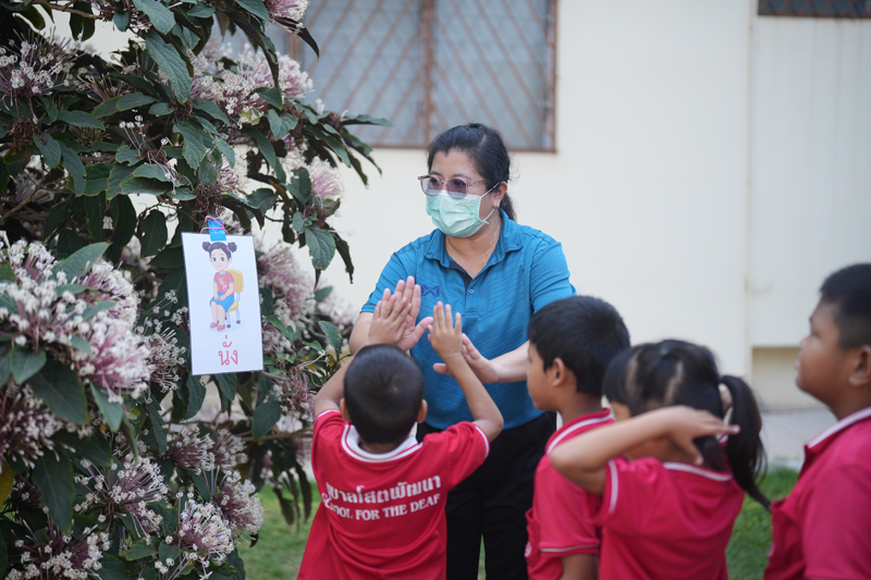 Sotpattana School for the Deaf organized the 2nd I-Love-Reading Activity for the second study term of Year 2024-2025 with the students moving around in the compound with their teachers while practicing the spelling of verbs on the flash cards posted in different spots.